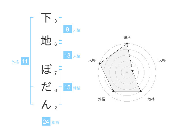 下地 ぼだんさんを姓名の画数から五運を鑑定