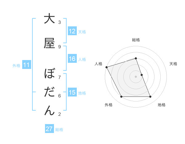 大屋 ぼだんさんを姓名の画数から五運を鑑定