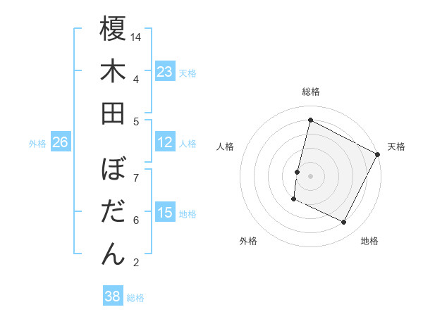 榎木田 ぼだんさんを姓名の画数から五運を鑑定