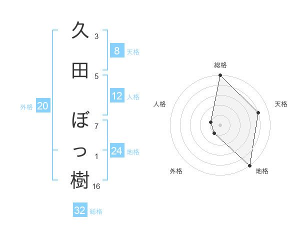 久田 ぼっ樹さんを姓名の画数から五運を鑑定