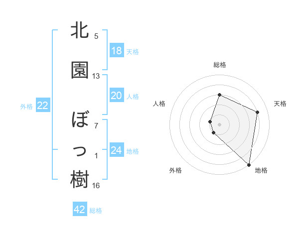 北園 ぼっ樹さんを姓名の画数から五運を鑑定