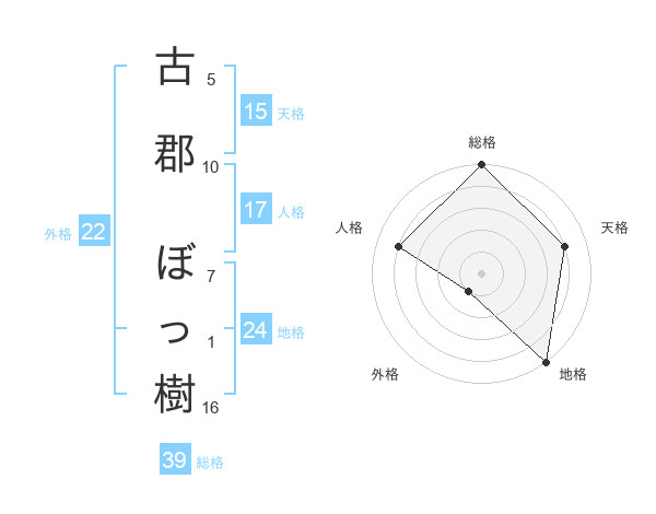 古郡 ぼっ樹さんを姓名の画数から五運を鑑定