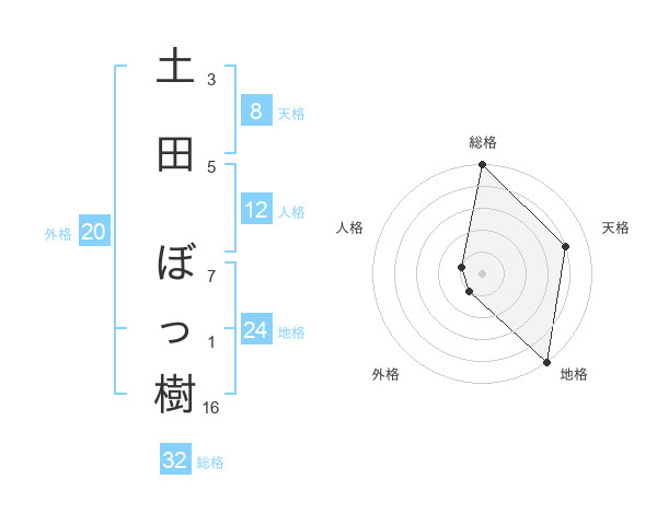 土田 ぼっ樹さんの総格は32画の5点!