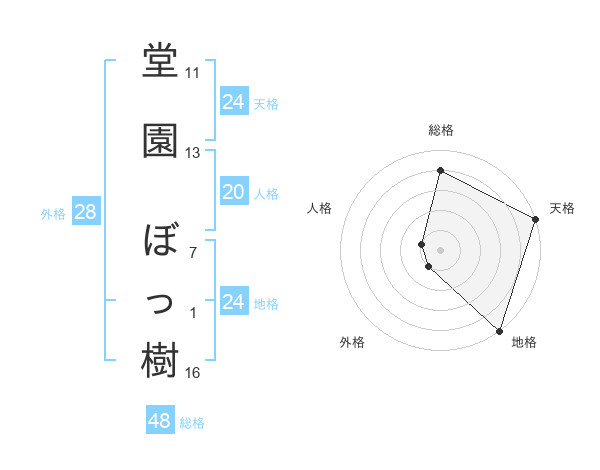 堂園 ぼっ樹さんを姓名の画数から五運を鑑定
