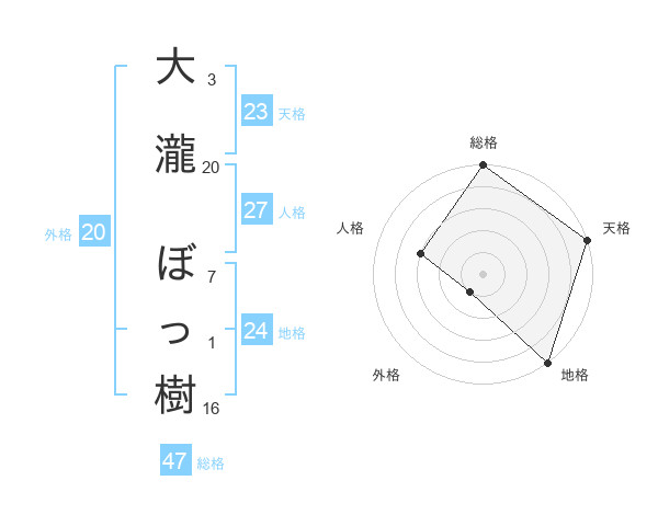 大瀧 ぼっ樹さんの総格は47画の5点!