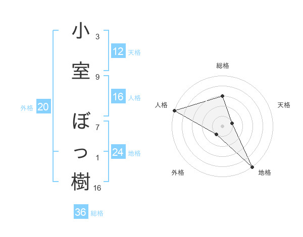 小室 ぼっ樹さんの天格は12画の1点!