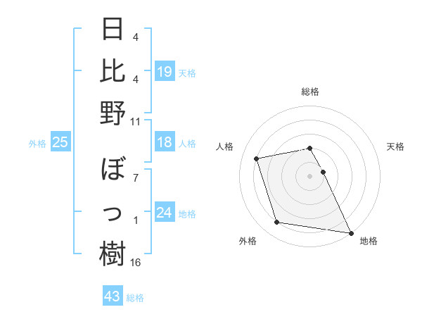 日比野 ぼっ樹さんを姓名の画数から五運を鑑定