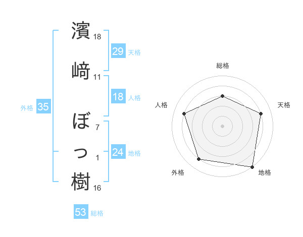 濱﨑 ぼっ樹さんの総格は53画の3点!