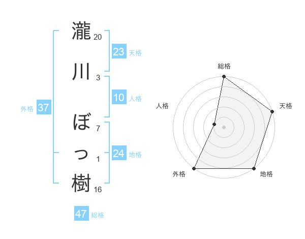 瀧川 ぼっ樹さんの総格は47画の5点!