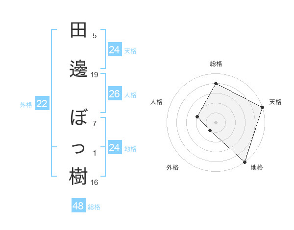 田邊 ぼっ樹さんを姓名の画数から五運を鑑定
