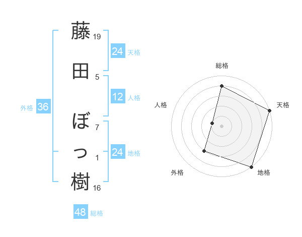 藤田 ぼっ樹さんを姓名の画数から五運を鑑定