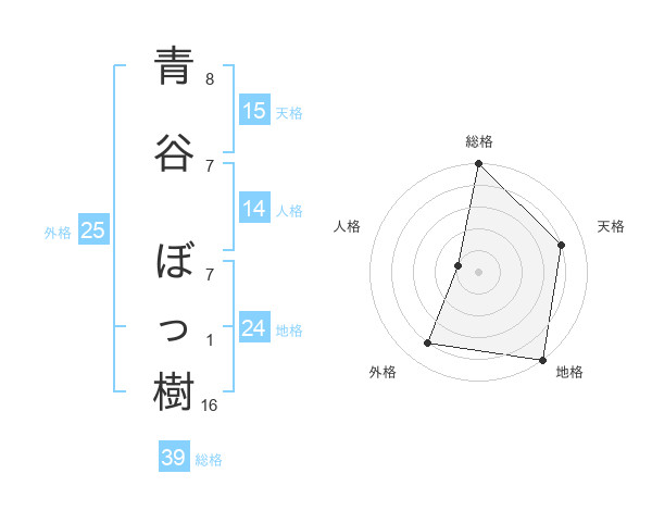 青谷 ぼっ樹さんを姓名の画数から五運を鑑定