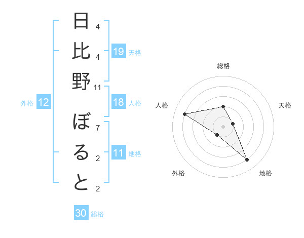 日比野 ぼるとさんを姓名の画数から五運を鑑定