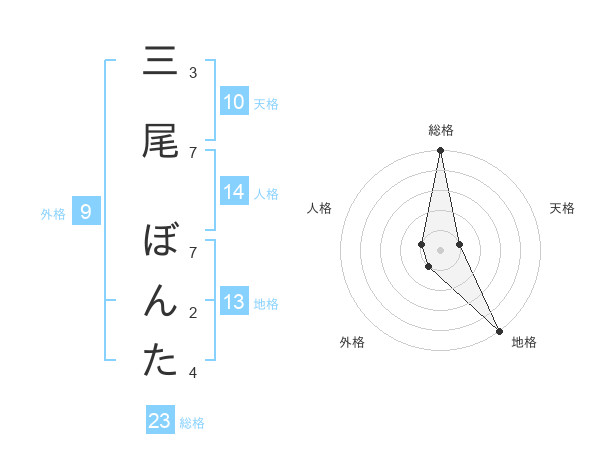三尾 ぼんたさんを姓名の画数から五運を鑑定