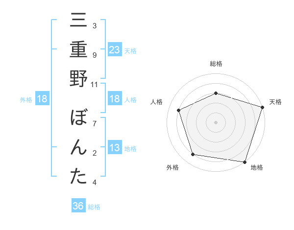 三重野 ぼんたさんの地格は13画の5点!