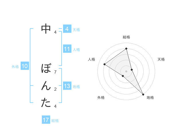 中 ぼんたさんの地格は13画の5点!