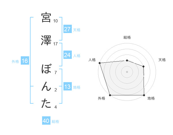 宮澤 ぼんたさんを姓名の画数から五運を鑑定
