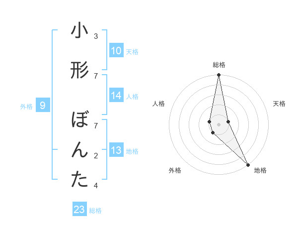 小形 ぼんたさんを姓名の画数から五運を鑑定