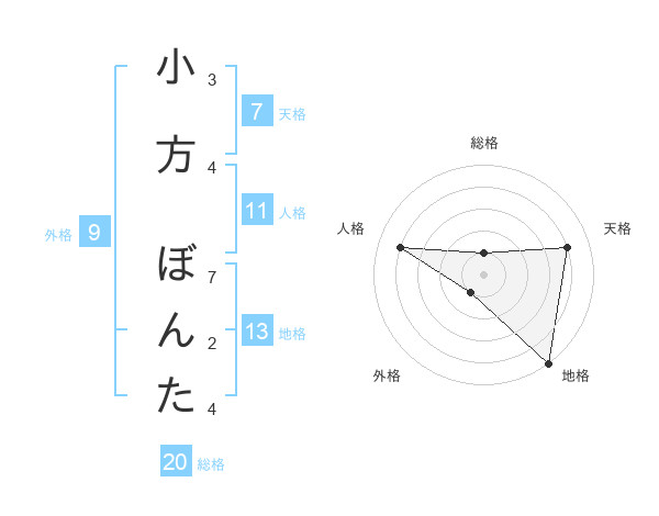 小方 ぼんたさんを姓名の画数から五運を鑑定