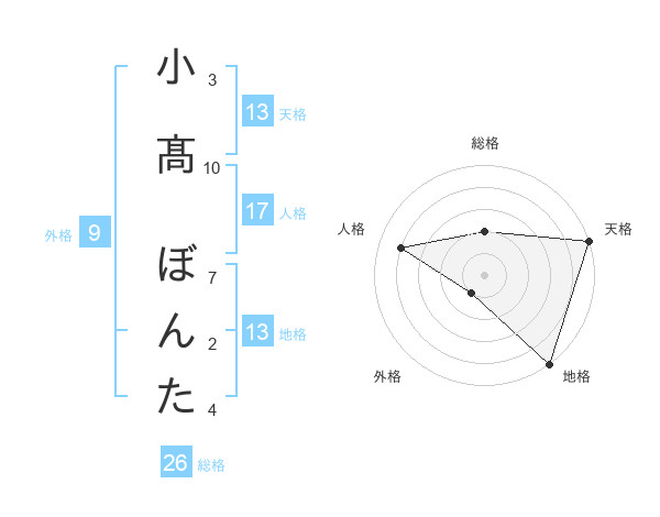 小髙 ぼんたさんを姓名の画数から五運を鑑定