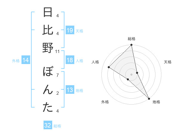 日比野 ぼんたさんを姓名の画数から五運を鑑定