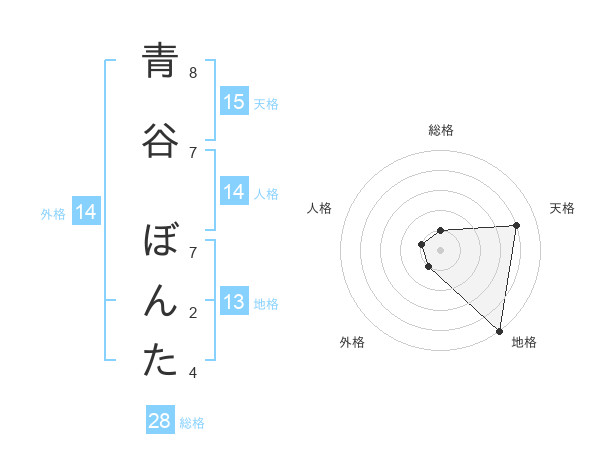 青谷 ぼんたさんの総格は28画の1点!