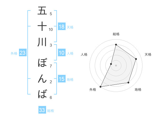 五十川 ぼんばさんを姓名の画数から五運を鑑定