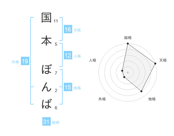 国本 ぼんばさんの総格は31画の5点!