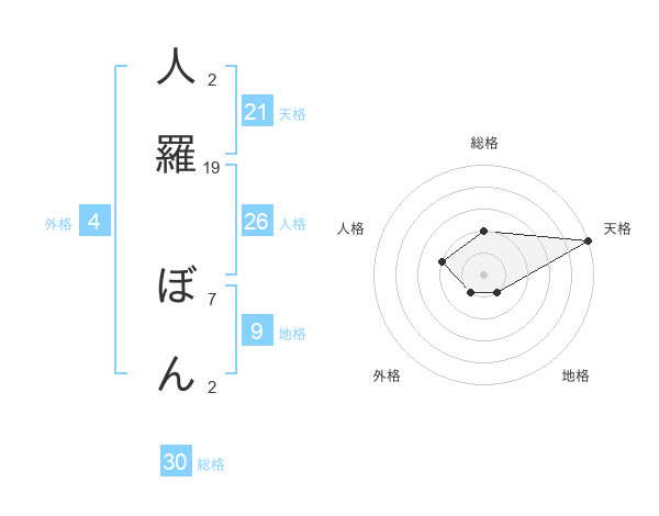 人羅 ぼんさんの総格は30画の2点!
