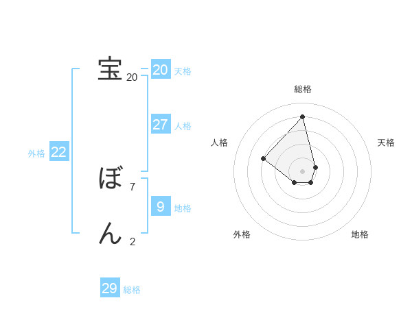 宝 ぼんさんの外格は22画の1点!