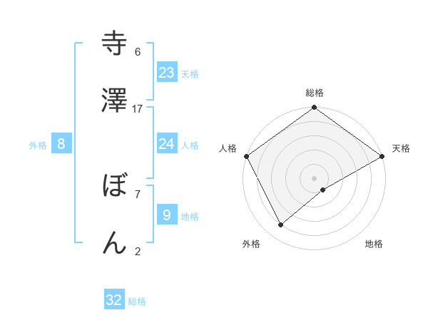 寺澤 ぼんさんの総格は32画の5点!