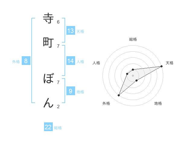 寺町 ぼんさんの天格は13画の5点!