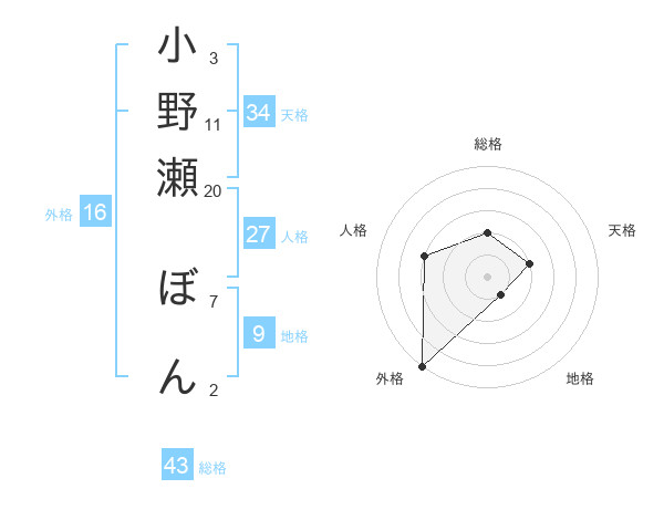 小野瀬 ぼんさんを姓名の画数から五運を鑑定