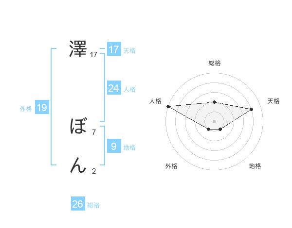 澤 ぼんさんの総格は26画の2点!