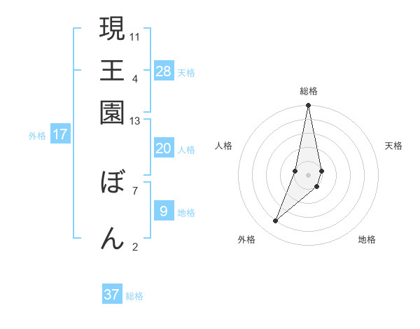 現王園 ぼんさんの総格は37画の5点!