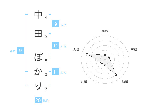 中田 ぽかりさんを姓名の画数から五運を鑑定