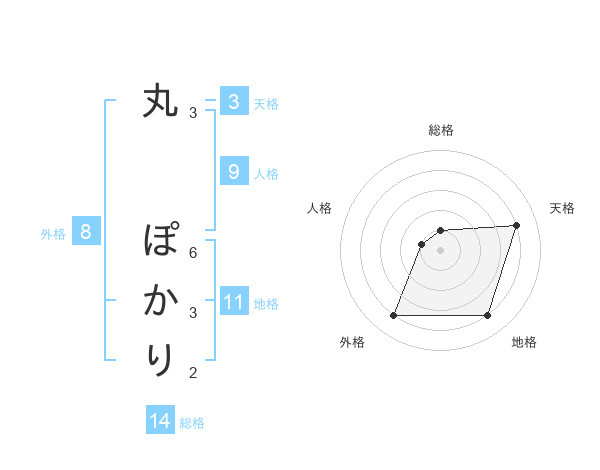 丸 ぽかりさんを姓名の画数から五運を鑑定