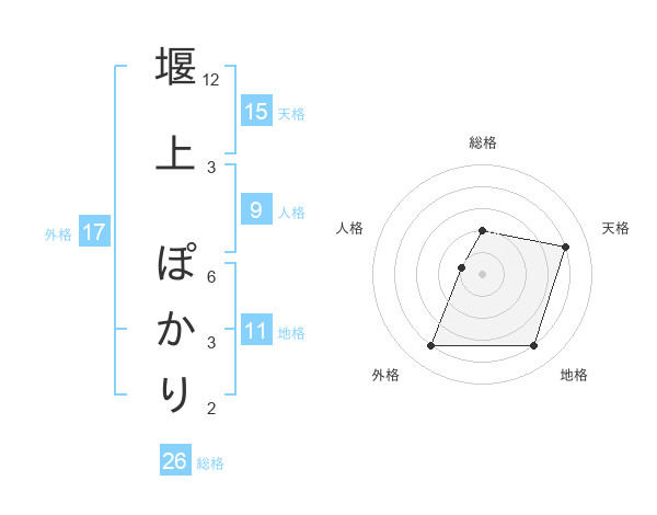 堰上 ぽかりさんの外格は17画の4点!