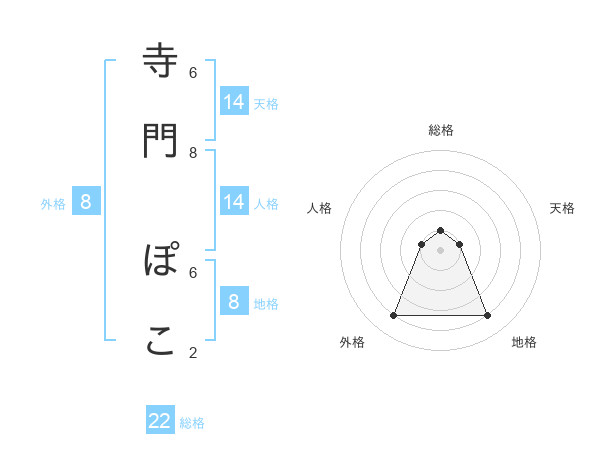 寺門 ぽこさんの総格は22画の1点!