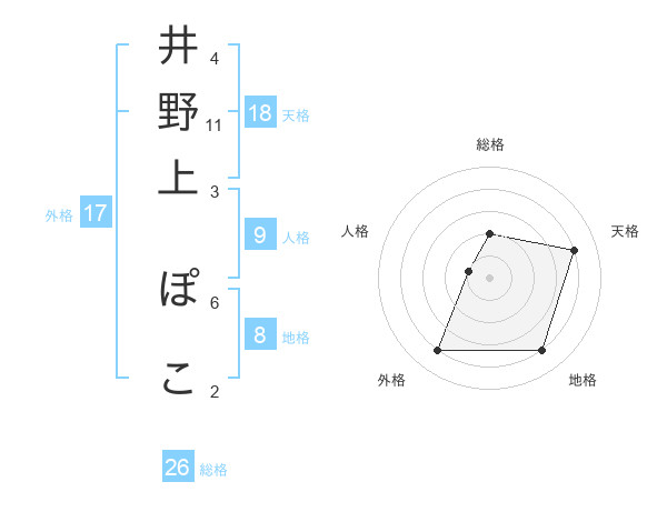 井野上 ぽこさんを姓名の画数から五運を鑑定