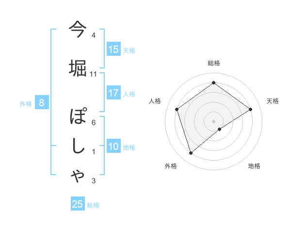今堀 ぽしゃさんを姓名の画数から五運を鑑定