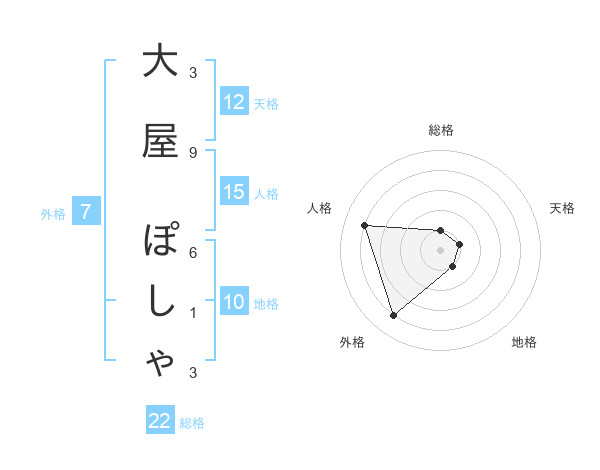大屋 ぽしゃさんの天格は12画の1点!