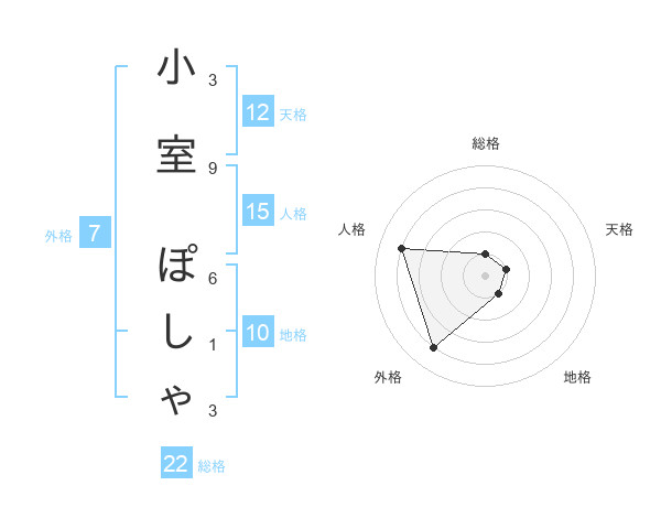 小室 ぽしゃさんの天格は12画の1点!