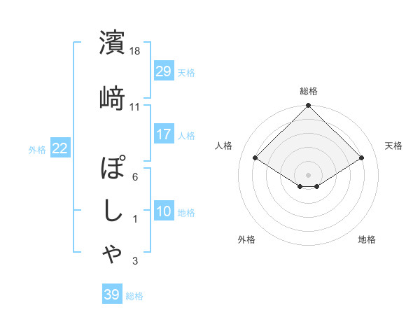 濱﨑 ぽしゃさんの総格は39画の5点!