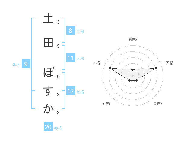 土田 ぽすかさんを姓名の画数から五運を鑑定