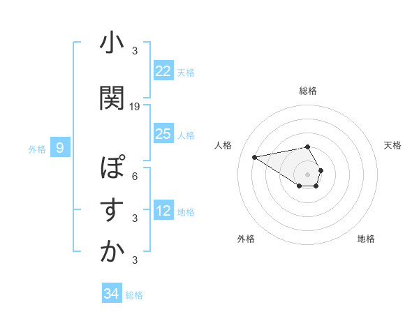 小関 ぽすかさんを姓名の画数から五運を鑑定