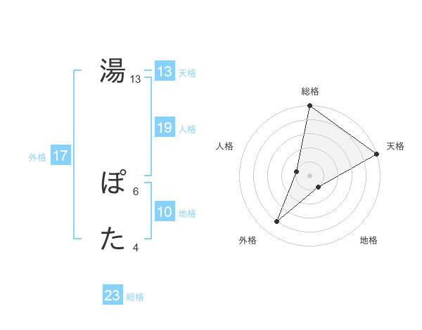 湯 ぽたさんの天格は13画の5点!