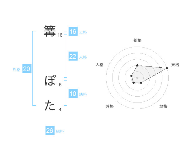 篝 ぽたさんの天格は16画の5点!
