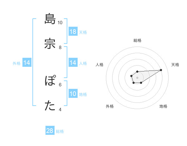 島宗 ぽたさんの天格は18画の4点!