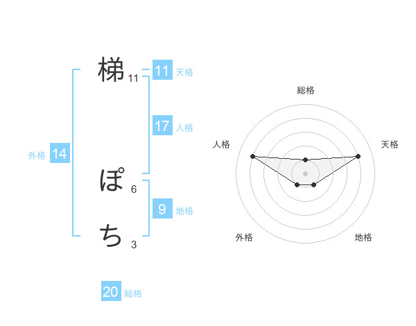 梯 ぽちさんの総格は20画の1点!